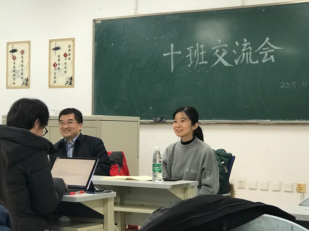 见面会开始前,会议主持人、2018级十班班长刘柏渔向两位老师简要介绍了入学以来班级建设情况及同学们所参加的一些活动。随后同学们结合对大学生活的不同理解和感悟分别做了自我介绍,既表达了对未来学习生活的期待,也提出了目前遇到的一些问题和困惑。两位老师认真倾听同学们的发言,并间或和同学们进行沟通交流。