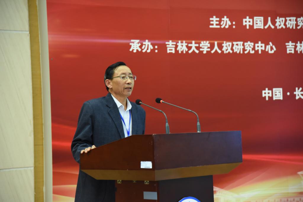 东北财经大学人权研究与教育中心原执行主任鲜开林教授作“论人民美好生活幸福权”的发言。鲜开林指出,人对幸福生活的追求和具体的人权实践相结合时,前者就从应然人权转化为实然人权。鲜开林提出了多个幸福公式,如柏拉图从感性和理性的角度对人的幸福的划分、美国经济学家萨缪尔森 “幸福=效用/欲望”等,指出真正的幸福能够真正惠及到人民。