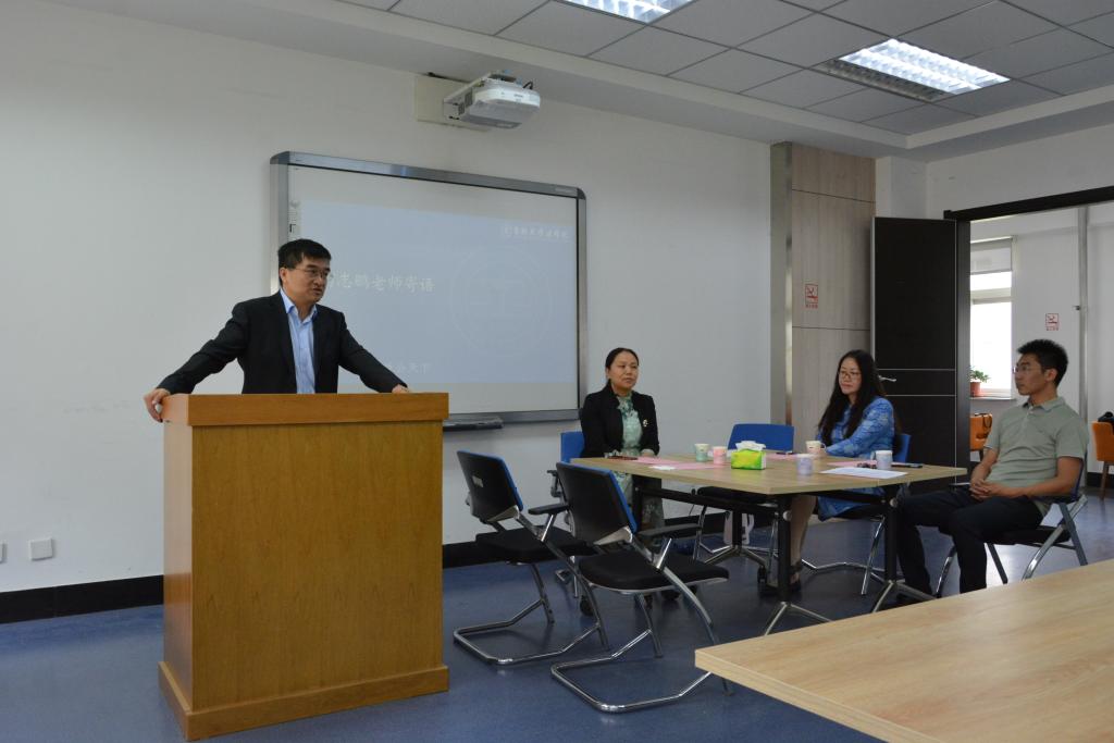 涉外班班主任何志鹏老师在总结发言中,提出了一个感受、两个嘱托。一个感受是:教学中师生共同成长,互动互构,师生间的交流起到了良性促进作用。两个嘱托是:第一,日后同学们即将步入的社会注定不会非常温和,同学们应当从线性思维(有因即有果)转换至量子思维(事物发生的概率性),尽管努力过后可能没有成功,但也不要放弃,保有愉悦,宁静致远;第二,与自己竞争,与他人合作。老师提到,日后的竞争对象并不是别人,而是自己,同学们应排除攀比的恶念,超越自己,追求自身的最高点。