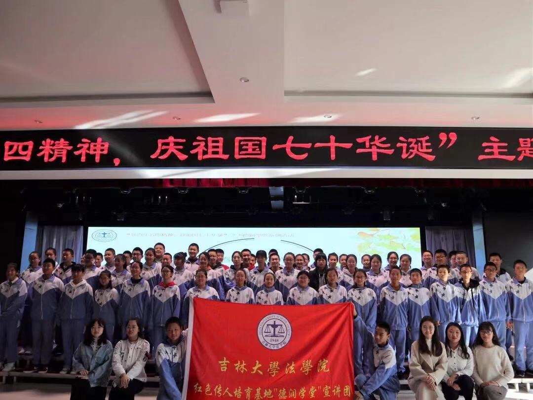 2019年10月30日下午,红色传人培育基地“德润学堂”学员、红色传人宣讲团成员徐俊玉、石尚、佟秋颐和孙子涵四名同学为长春市东光学校的同学们带来一次生动有趣,内容丰富的团史党史宣讲活动。长春市东光学校的初二近百名学生认真聆听了本次宣讲。