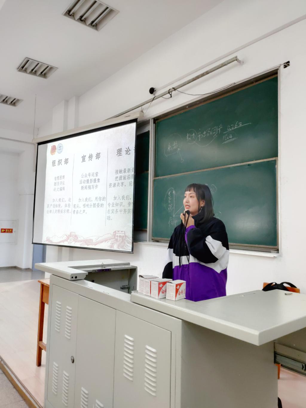法学研究生分团委和法学研究生会的主要负责人员在2019年11月1日下午的课程间隙向同学们进行了纳新宣讲。