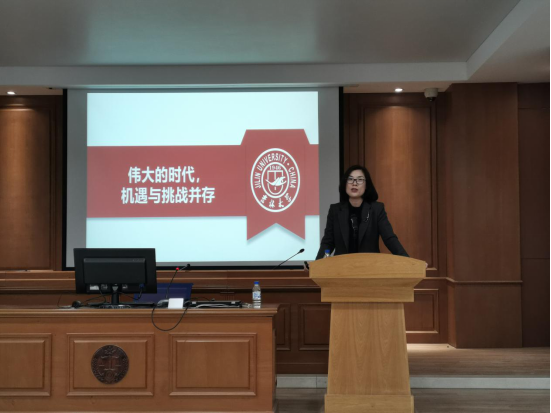 接下来,张广翠结合图表与数据,直观地向同学们展示了吉林大学与吉大学子近年来在国际交流合作中取得的显著成绩。她指出,在经济飞速发展、社会高度信息化的今天,国际交流合作已经成为新时期高校建设的五大使命之一,其重要意义日益凸显。而在座的同学们作为吉大老虎机平台