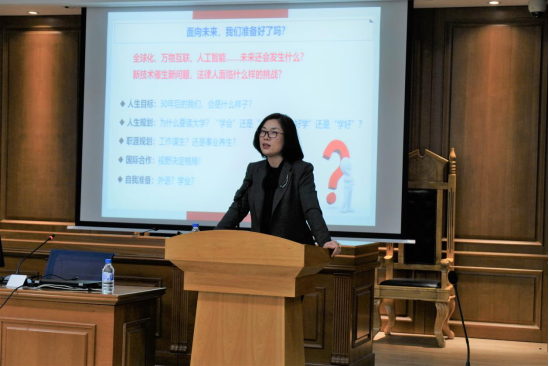 学生的知识架构与专业背景,设身处地地为同学们提供了针对性的建议。她提醒同学们,作为一名法律人,在不断磨练提高自己的对外交往能力、文字表达能力、解决问题能力、风险研判能力,塑造健康人格的同时,要不忘追求公平正义的初心,恪守职业伦理道德,兼顾法律效果与社会效应,做到情理法相统一。她勉励同学们,要坚定理想信念,提升专业素养,恪守严谨态度,锻造坚毅品格,在合作中互学互鉴,共同进步,正所谓“始于志同,长于不弃,成于协力”。