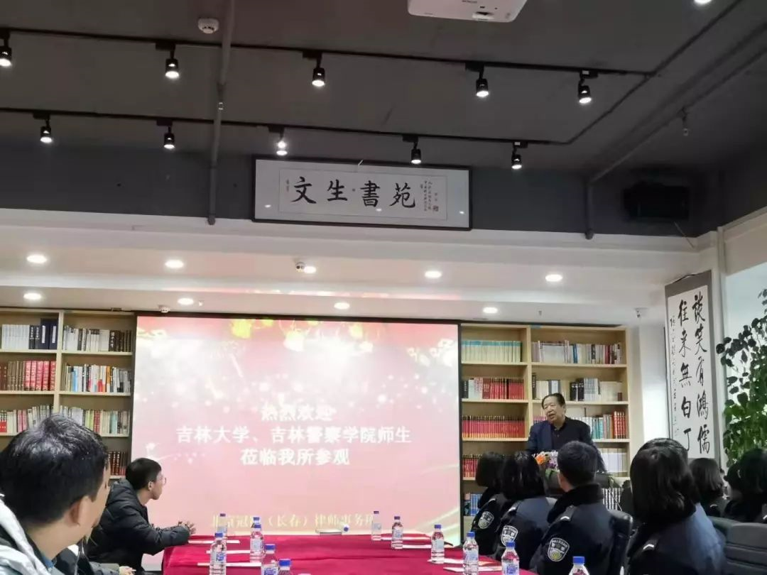 研究生的到来表示热烈欢迎,并全面介绍了律所的基本情况。北京冠衡(长春)律师事务所位于南环城路,成立于2011年12月,是一家诉讼与非诉讼并举的综合性、合伙制律师事务所。经过八年的锐意进取,蛤贝成珠,北京冠衡(长春)“律师事务所实现了跨越式发展,已是业内管理规范、人才济济、具有广泛影响的现代化律师事务所。犹如一颗璀璨的明珠镶嵌在美丽的北国春城。律所精英们恪守“厚德明法,诚信敬业”的所训,“君子律师行天下”是律所每一位律师的座右铭。 在王文生主任的带领下,同学们对北京冠衡(长春)律所会议室、律师调解室、文生书苑、“文生律师大讲堂”进行了参观。“文生律师大讲堂”的普法模式给同学们留下很深刻的影响。其中,王文生主任为我们介绍了,文生律师大讲堂主要是律所在承担社会责任方面的一个重要窗口,主要是为了帮助不同群体实现法律诉求有创设的讲堂,为普法工作的开展做出了重要贡献。截止目前,讲堂已经进行了13次演讲、听众人数达2000人。
