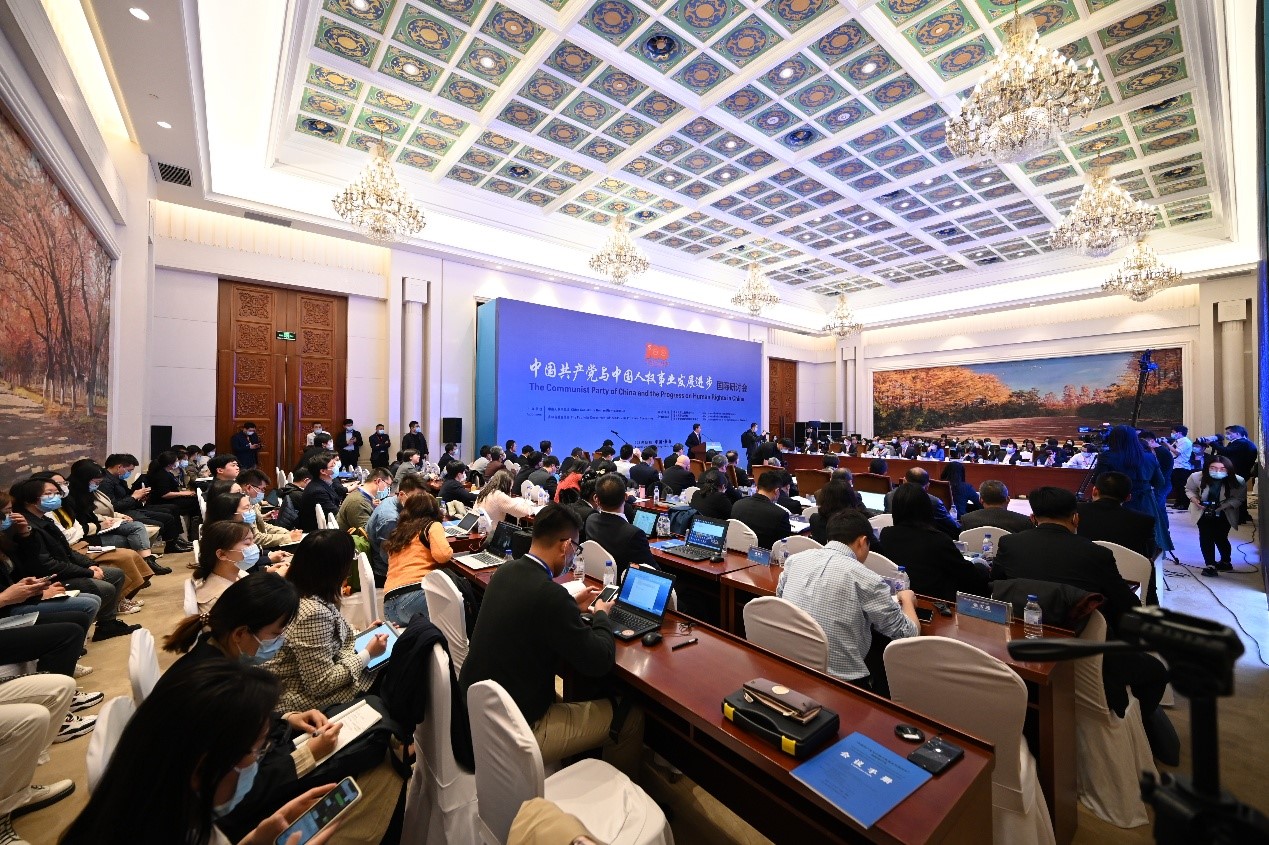 中宣部副部长蒋建国指出,中国共产党的人权事业坚持以人民为中心的发展思想、坚持完善和发展中国特色社会主义制度、坚持在发展中保障和改善民生、走出了符合中国国情的人权发展道路,并欢迎参会嘉宾积极研讨、集思广益。