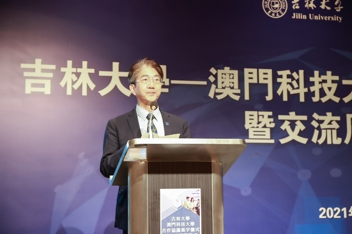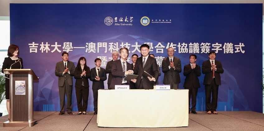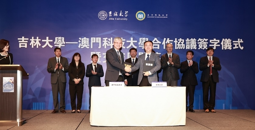 吉林大学—澳门科技大学合作协议签字仪式暨交流周开幕式由吉林大学港澳台办公室主任张广翠主持,澳科大校长李行伟与吉林大学校长张希代表签署两校合作协议;澳科大副校长庞川与吉林大学副校长赵宏伟代表签署两校共建未来技术联合研究院合作意向书。