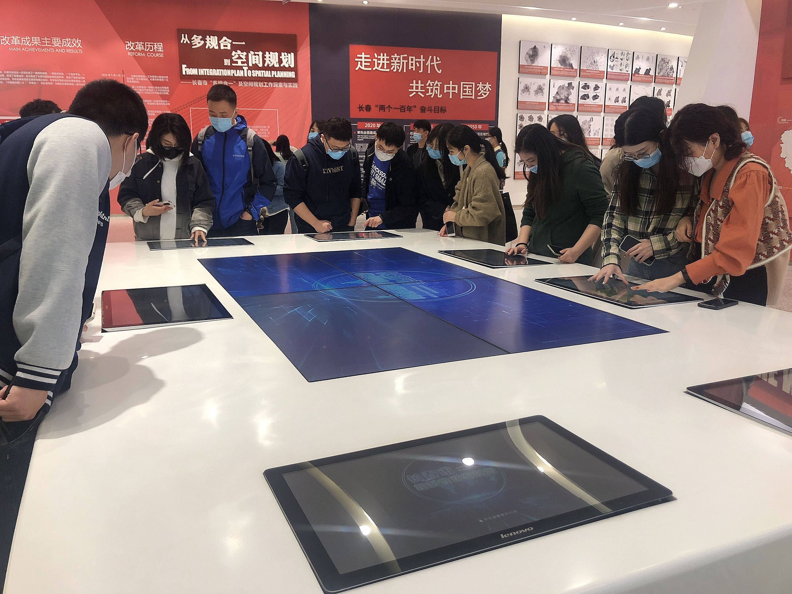 离开未来,回归现在,二楼展区介绍了近年长春城乡的战略规划以及施展情况,主要有“一带一路”国家战略规划、长春城市总体规划、长吉图开发开放先导区规划、旧城改造规划等。