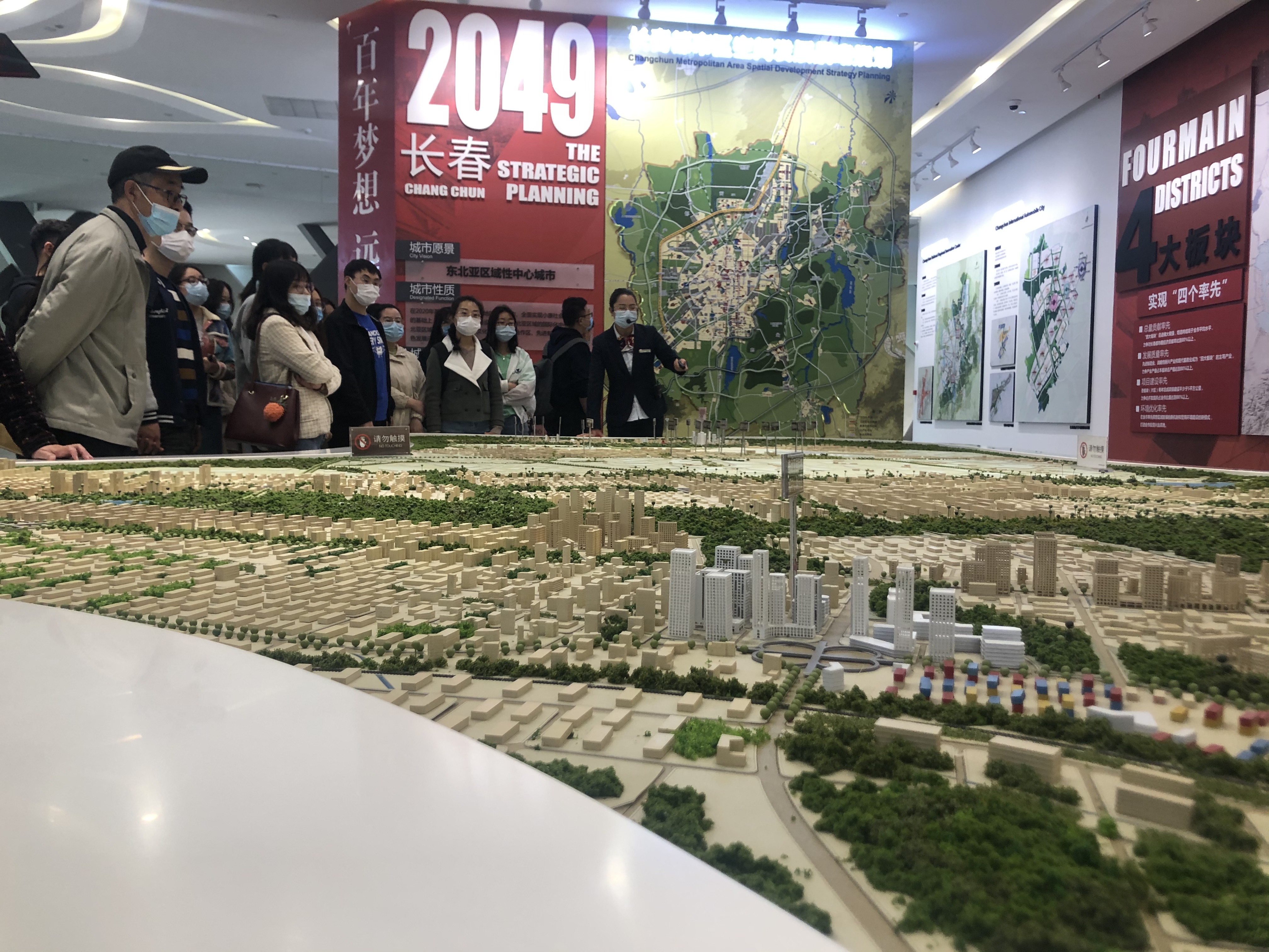 九时许,在讲解员的带领下,同学们乘坐扶梯上至三楼,开启了以“未来——现在——过去”为主线的参观之旅。先后走过了“城市未来探索”、“城市科学规划”、“城市发展历史”三大板块,品读长春历史,探索城乡未来。