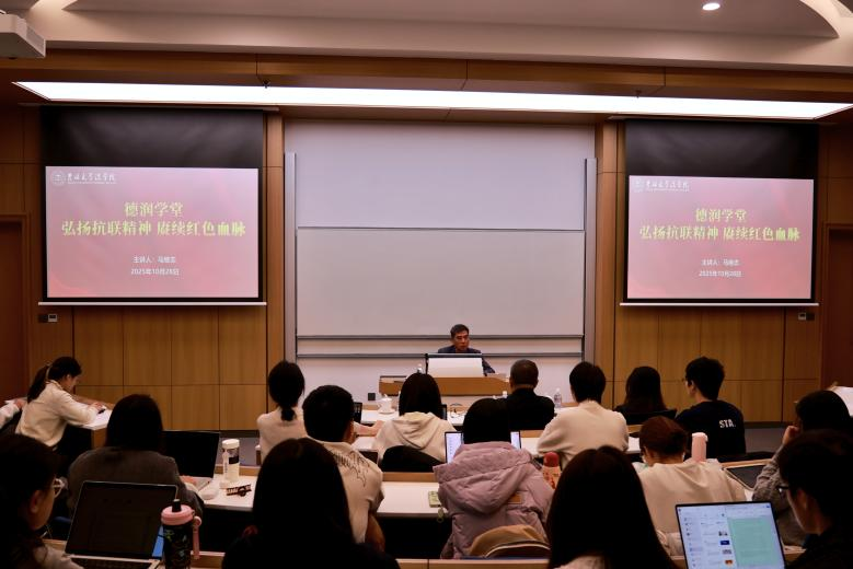 党委高度重视,党委书记张杰,党委副书记兼副院长马旭,党委副书记张俊峰,徐卫东教授及商法教研部党支部教师,与百余名学生共同聆听。未来,学堂将持续挖掘地域红色资源,通过“后代讲历史”“专家释精神”“实践悟初心”等形式,让红色文化浸润校园,激励青年学子在新征程上传承红色薪火、书写奋斗华章。