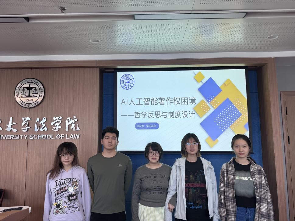 王建玲讲师担任指导老师,围绕“人工智能生成内容的著作权法律问题”这一主题,组织四组同学展开专题研讨,探索重构著作权体系的道路。