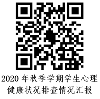 兼职心理辅导员及负责研究生工作的学工干部,根据排查情况认真填写《2020年秋季学期学生心理健康状况排查情况汇报》(见二维码),如排查无情况,也需提交汇报。该通道将于9月18日关闭,请各单位务必及时完成排查工作。
