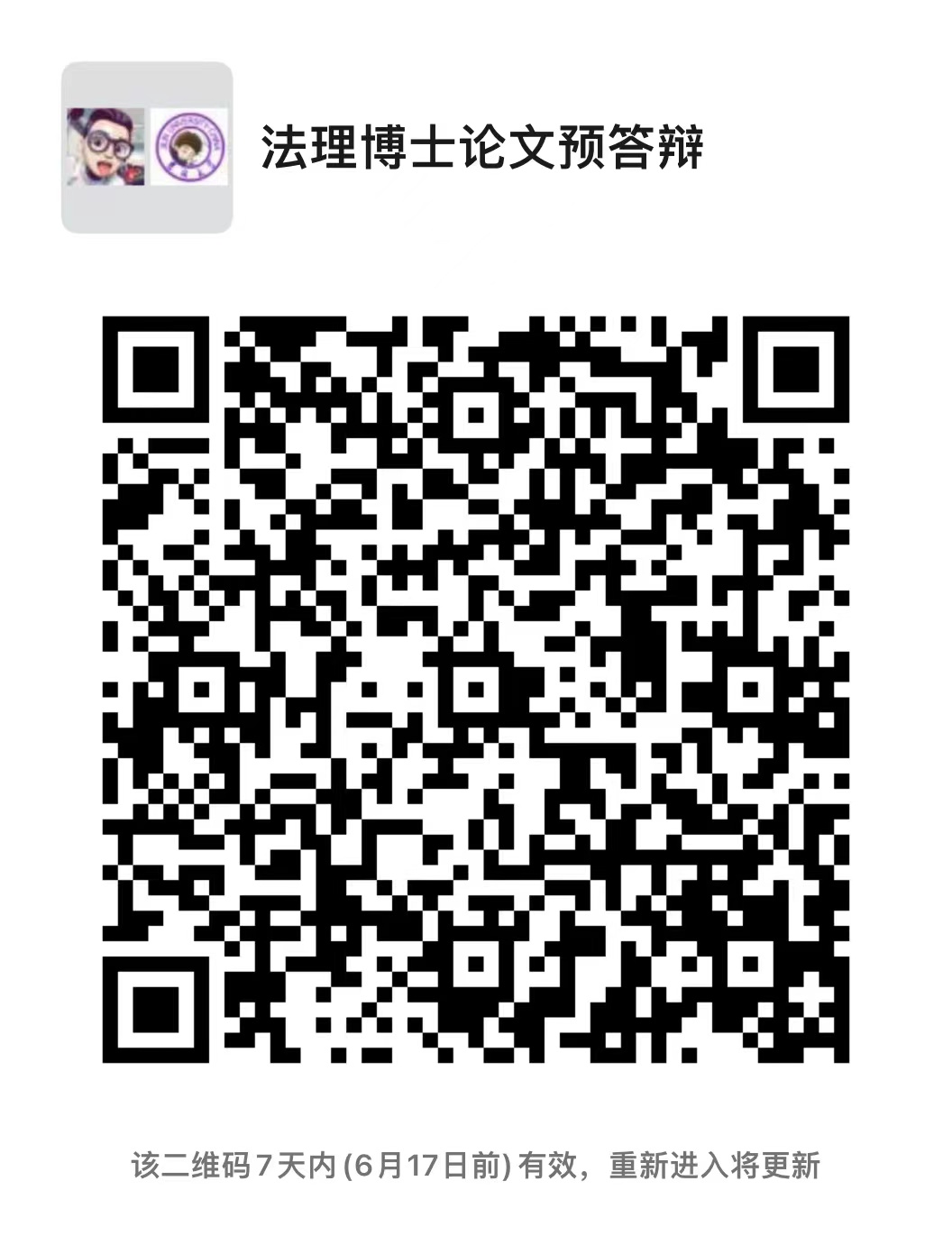 法学理论专业(含司法文明方向,廉政中心,少数民族特招生,南方研究院的博士生)博士论文预答辩拟于6月18日(周六)上午8:30举行。相关同学请提前加入微信群。