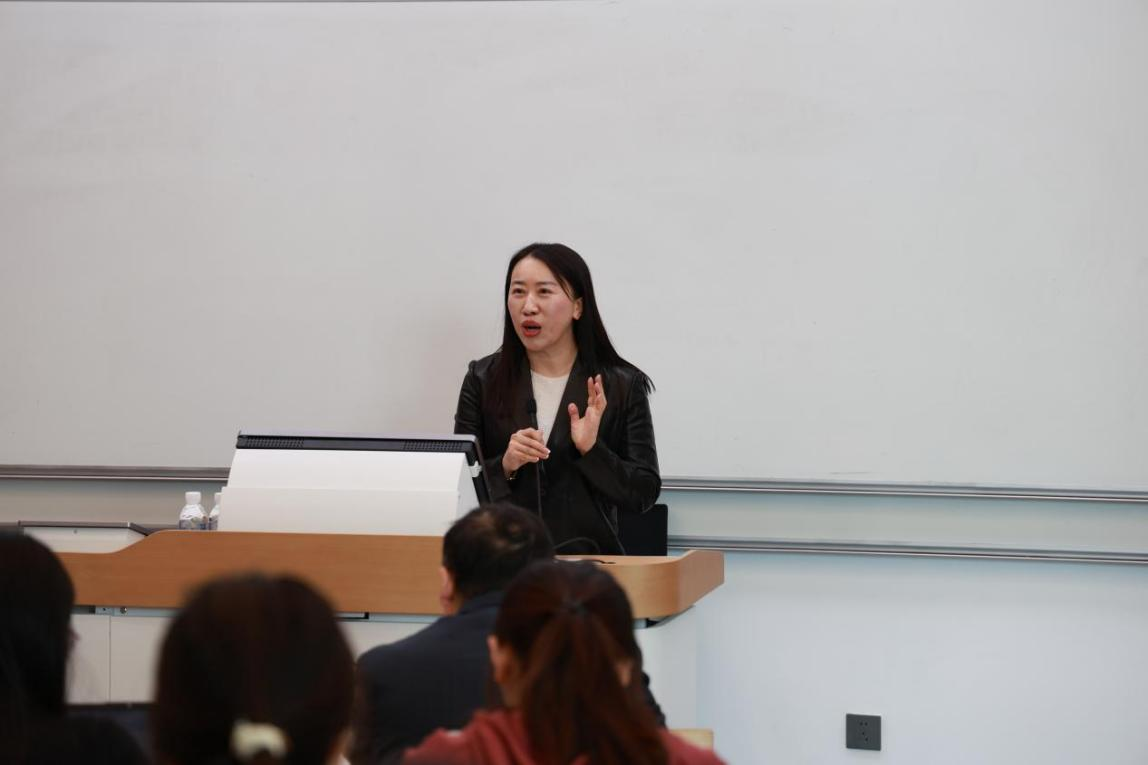 随后,姜艳丽律师围绕“破局与跨界:中国法律人的北美实战指南”这一主题,结合自身深耕跨境法律服务二十余年的丰富经历,为在场师生带来了一场内容丰富、视野开阔的职业分享讲座。首先,姜艳丽律师打破传统讲授模式,以分组的形式,通过几段视频引导同学们分享心中对涉外律师的印象。针对“光鲜亮丽”“国际旅行”“高薪优渥”等刻板认知,姜艳丽律师结合自身经历,深入剖析了涉外律师的真实工作场景。她指出,涉外律师不仅仅是法律专家,更是跨国商业架构的设计师与风险阻断者,核心战场涵盖跨境并购、复杂国际争议解决以及顶层税务与信托规划等领域。
