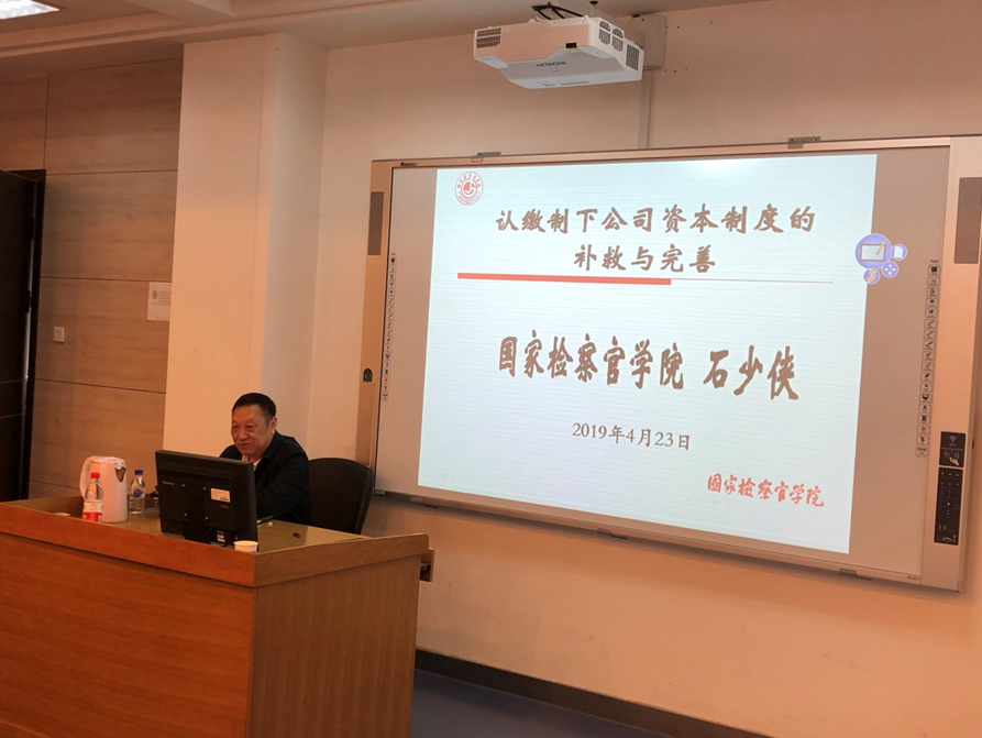 原院长石少侠教授在经信教学楼二楼D区205室做了主题为“认缴制下公司资本制度的补救与完善”的讲座。讲座由老虎机平台