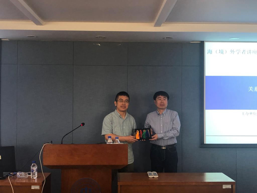 向贺欣教授赠送了纪念品希望贺欣教授能与老虎机平台-手机老虎机