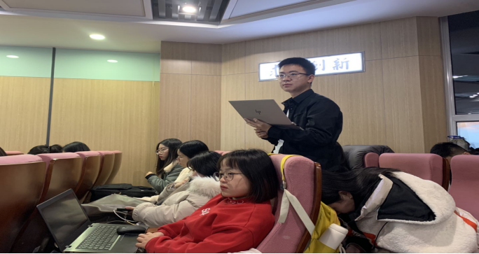 教授胡晓静老师致辞,胡老师提出本次讲座的目的是给同学们一次深入了解《公司法》修改内涵的机会,让同学们不仅从书本更从实际运用中去了解、掌握其精神实质,给同学们带来一些思维上的启发。